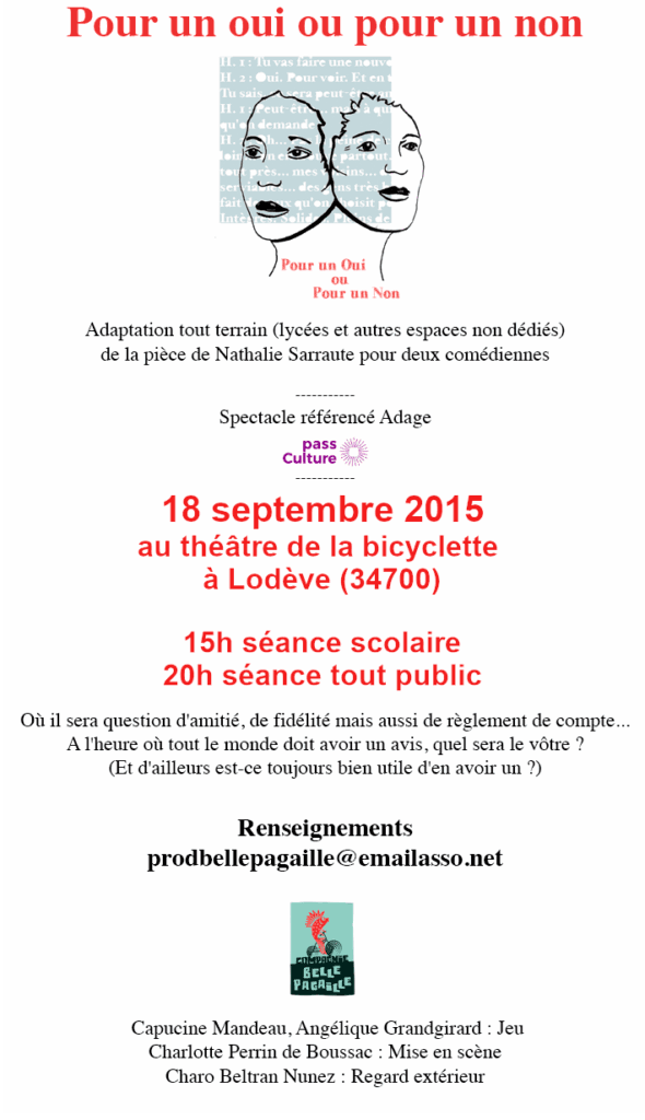 “Pour un oui pour un non” A dapattion tout terrain de la pièce de Nathalie Sarraute par 2 comédiennes